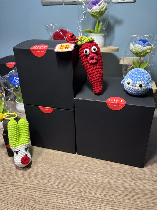 [Blind Box] 3 Crochet Accessories + 2 DIY Plush Pet, Knitted finished product garlic, green onion, Chinese cabbage pendant creative keychain bag accessory exquisite gift